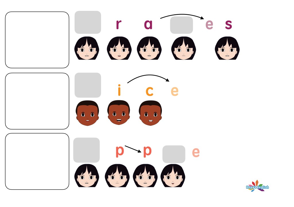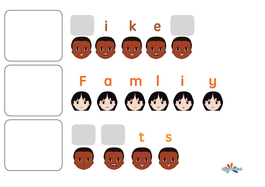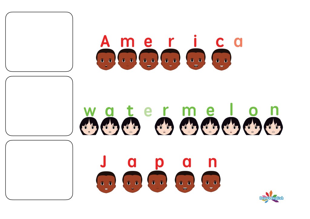 四角の中には絵を描いたり、単語の練習をしてみよう!
