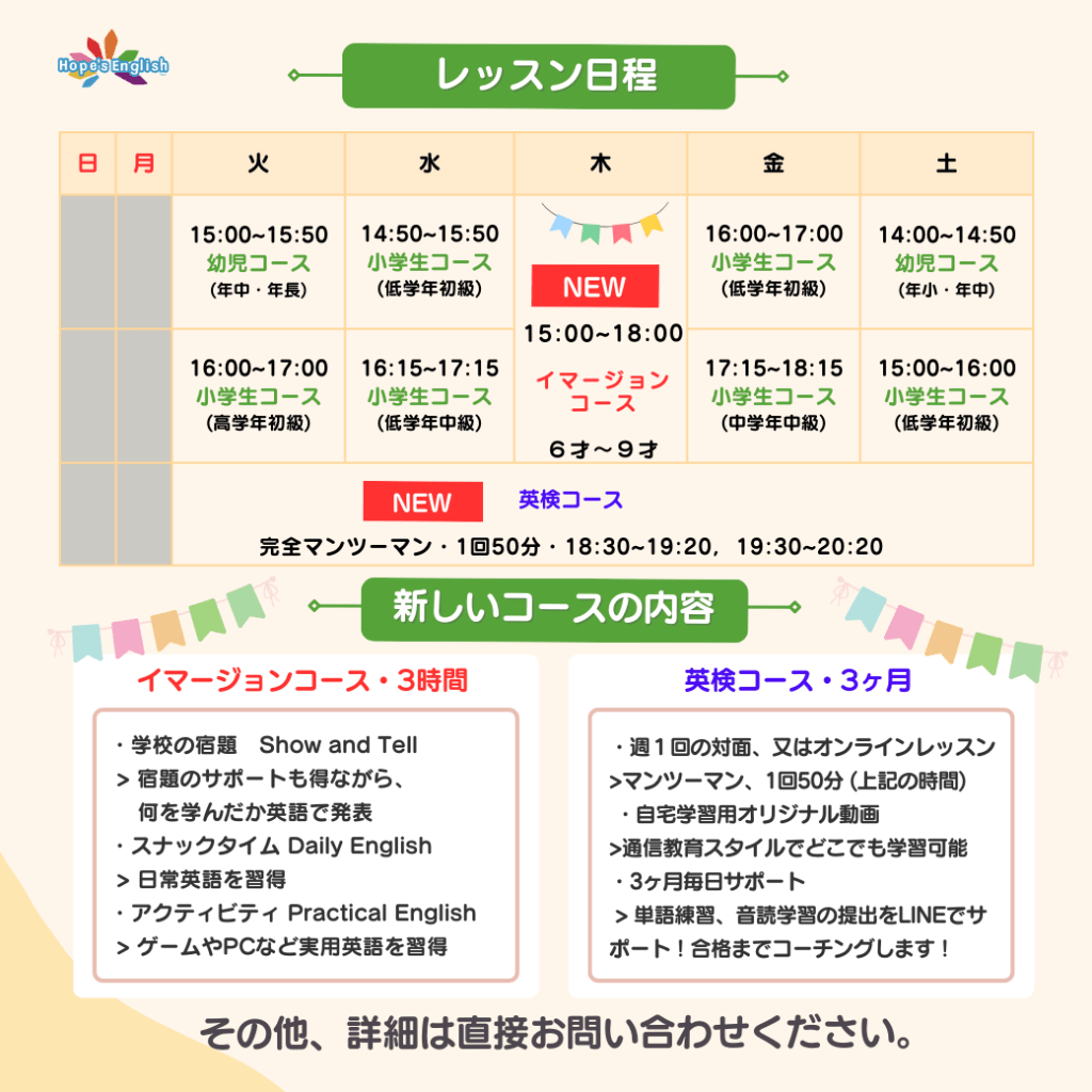 より多くの皆様にとって、Hope’s Englishが成長の場となるよう尽力して参りますので、今後とも宜しくお願い申し上げます。